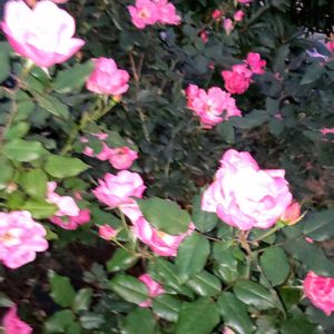 ノックアウトローズ 咲き終わりのものが薄いピンクに変化 それでも多くの花がついている