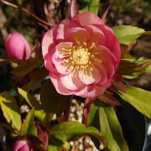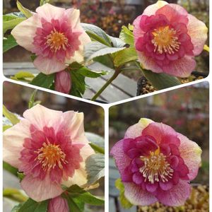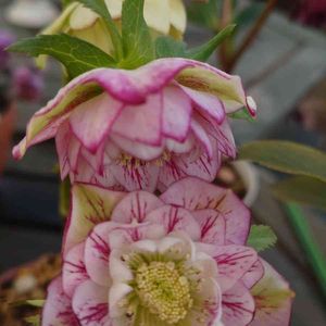 ピンクの八重咲きクリスマスローズ 仲良くコショコショナイショ話🤭✨