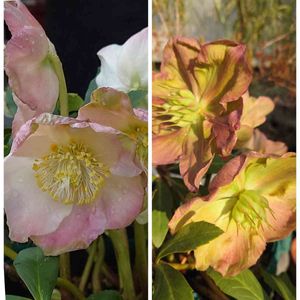 クリスマスローズ セミダブルのネクタリーが可愛コたち💗 たまたまなんだけど、左は産直で安くゲットしたコ 右はその前にネットでポチッってたコ お花は2つとも似て非なる、、、それぞれ可愛い???💗💗