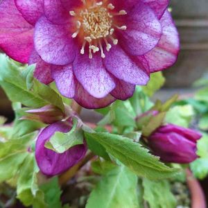 クリスマスローズの原種で見たこと無いくらいのピンクの大きな花が咲いてて、値段聞いたらビックリで買わなかったけど、先日行ったら花が終わってて、5分の1以下にしてくれたので、お迎えしました🤭✨💗オトク感ある〜💕