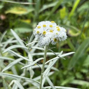 一瞬ウスユキソウにも見えたヤマハハコ⚪️⚪️🧐 山頂ヒュッテ・Bakeryの入り口にたくさん咲いていました💕 雲上のBakeryのパンはふわふわでした😋 白い球状の花に見えるのは総包片で本当の花は中心の淡黄色の部分で雌雄異株だそうです❣️ 🏷白い水曜日♡ 🏷白い貴婦人✨に参加させて頂きます🥰