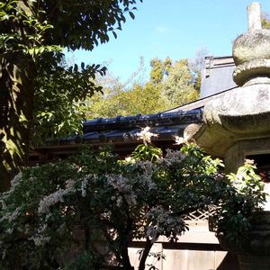 お天気が 良すぎて💦 馬酔木さんが 満開♪ 燈籠の向こうに 本殿の屋根