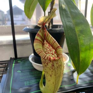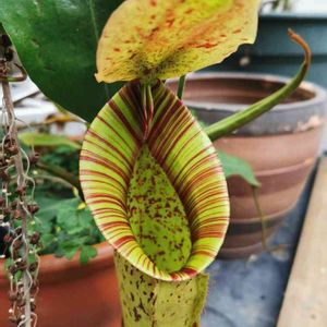 知人からもらったネペンテス・ダイエリアナ🌱 不思議な縞々の襟はいつまでも見てられる気がします😊✨
