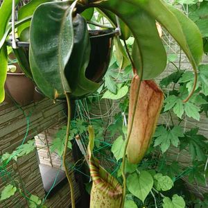 ネペンテス ダイエリアナ 葉っぱ🌱の割にピッチャーがデカイ😁左右でバランスとっているのか?