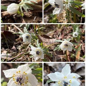 セツブンソウ(節分草) キンポウゲ科 日本固有種🇯🇵 小さな小さな春の妖精🧚♀️ (スプリング・エフェメラル )に出会えました💕 セツブンソウは茎先に1輪のお花(直径2cm位)をつけます🤍 白い花びらのように見えるのはガクで🤍本当の花びらは退化してお花の中心にある黄色い蜜槽と呼ばれるものになっています💛 オシベは多数で葯は紫色💜 メシベは2〜5個あります🤍 お花の下には手のひら状に切れ込んだ総苞(花序全体を包む葉の変形したもの)があります💚 早春に芽を出し節分の頃に花を咲かせることからセツブンソウ🫘 寒空に咲く可憐でけなげな姿に出会え😊 思わずニッコリ&ホッコリしてしまいました💕 高知県高知市五台山 "高知県立牧野植物園"で撮影🤳