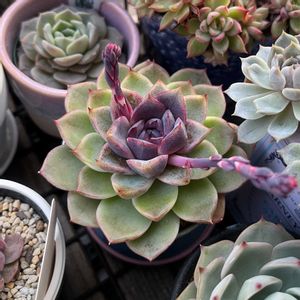 今年は黒いエケベリアが グングン伸びて 開花していました。 花は赤だった。 この後は 茎をカットするのかな。 こんなに伸びると 思ってなかったから思案中。