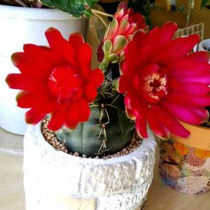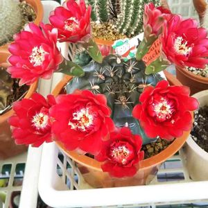 早めに取込み室内の日当たりバッチリな所でスクスクと...✨✨ 4センチほどの大きさです😉 サボテン科ギムノカリキウム属まではわかりますがその次の名前がね...😅 名無しだったので...😅 なんだか同じ感じのが沢山あって名前調べは即ギブアップ‼︎ わからなくても大丈夫ですが... もし、どなたかわかる方いましたらお願いします!🙇♀️ 探してみました自分! 緋花玉かと思います!チャンチャン!