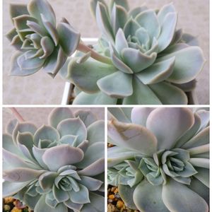 連投失礼します💦 【寄せ集め4番鉢】 何故ここに若緑?のご指摘は甘んじて...😆 余ったエケベリアを纏めただけ? 4隅を決め、ルンヨニーを並べ、気が付くとこうなってました😅 「桃太郎」「野ばらの精」「ミニマ」「グスト」は寄せにちょうど良いサイズなのに使いこなす腕が無かった。スマン😥 ミーティングの時間に間に合った💨