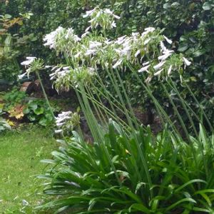 白いアガパンサス 雨が続く毎日。 自転車にはカッパが手放せない季節になりました💦 そして、やっと白いアガパンサスのお花がきれいに咲いていた。