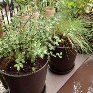 花友ちゃんから頂いた フェツカグラウカ と ピットスポルム シルバーシーン 取り急ぎポットへ植え替え😊 株分けできるので 寄植えにしたら素敵になりそうと 構想中🤔🥰 ニューギニアインパチェンスとかと 合わせようかなー🎵 合うオージープランツないかなぁ