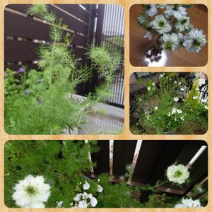 今日のお花 ニゲラ ホワイト 今年は左上。まだつぼみちゃんです。 ほかは昨年のpic