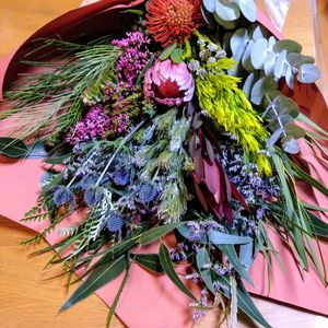 初めての世界の花屋さん リューコ、プロテア、アデナンサス、グレビレア、ユーカリ、エリンジウム、バーゼリアetc. 遠い国からやってきたと思うと感無量、とても美しくて育てられた人の真心が伝わってきますね 花束にアデナンサスが入ってましたが意外と合うのですね〜 また育てようかな4度目のリベンジになりますが😅