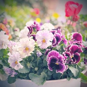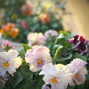 パンジー ムーランフリル❁⃘*.゚ エディブルフラワーです❁¨̮ 前回の最強寒波の時 せっかく咲いたお花が寒さに負けてダメになり 一旦葉っぱと小さいつぼみだけになりました その後の春めいた暖かさのおかげで今はこんな感じです❀ 𓂃𓈒𓏸❁.*・゚😆✨ でも またまた寒波❄️ この寒波が過ぎ去ればいよいよ春かな? 春が待ち遠しいな… そして もりもりになるのが楽しみです*.(*´͈ ˘ `͈*).* もりもりになったら… 今年こそお料理に使おうかな? …そう思いながら いつも可愛くて使えない私です😅