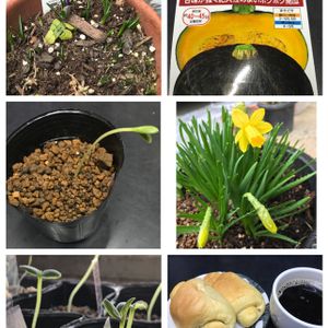 こんにちは😃 昨日、スイカの紅まくらが、全部駄目になったと思っていたら、1つだけ起き上がってきました♫ これ、実は8株のうち、3株だけ根切り挿ししたもの。 ウリ科なんだから、キュウリと同じに実験しちゃえ‼️と😅 でも、駄目になったのは、何もしなかった苗💦 んー😕でも一株じゃ、耐性が付いたとはいえ、頼りないので、また8株作ります。 今度はカボチャとでも接ごうかな? 簡単にはつぎ苗用のカボチャの種なんて、手に入らないので、なんだか強そうな放任栽培カボチャなるものを入手🎃 雪が降っていますが、外でミニ水仙が咲きました。 朝ごはんは、手作りして冷凍してある、あんバターロールと、コーヒーです。 クロッカスはもう少し💦 玄関で本当は日光浴したかった、キュウリの苗。 これも根切り挿しした苗です。