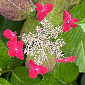 今日のお花 紫陽花 🪴 "くれない" いくつか咲いている中のひとつだけ… 中心の花がこんなにかわいく綺麗😍