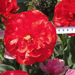 チューリップ専用花壇🌷❤️🌷 アイスクリームストロベリー🌹🥰🌹 全開すると約15cm 牡丹のようなインパクト 2025.4-100