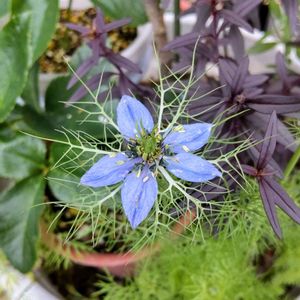 ニゲラの仕分けが追い付かず、結局こぼれダネから青の一重や白の八重が咲き乱れています