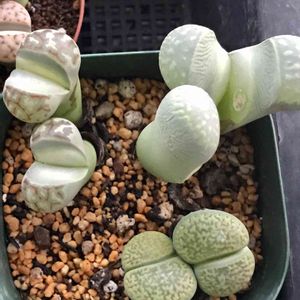 リトープス 朝貢系の何か・・・😅 ピンクとか、赤の花を期待したのですが 黄色でした💦 普通のリトープスの黄色とは 微妙に違うかな? って感じですねぇ💦 期待ハズレでした💦 (๑˘・з・˘)(๑˘・з・˘)