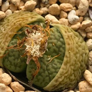 リトープスのグローエンドライエンシス。グローエンドライ農園で見つかったからグローエンドライエンシス。 私が持っている植物でこの時期に白い部分がある植物はこれだけです。もうちょっといい画像が撮れたら応募してみようかなと思います。
