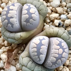 リトープス コールオルム C396 群馬遠征の戦果その②です。 鉢の表面に並んでいる赤玉土の小粒と大きさを比べていただければわかりますが、とても小さな個体です。 コールオルム自体が小型品種だそうで、育ってもそこまで大きくはならなそうです。可愛らしさをいつまでも楽しめるのでそれはそれでよいかと思います。