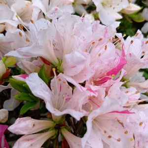 おはようございます。 🏷️毎月20日は庭の日! 今日も、ツツジさんです。🤍💗色のミックスさん! セントーレアパープルハートさん! スズランも、咲き始めました。 カーペットかすみ草さん、ちょっと増えて来て、嬉しい! アマドコロさん、去年、近所の方から、貰いました。😊 今日は、雨振りなので、庭仕事は、お休みで〜す。(˶ᵔᵕᵔ˶)🐱🐾