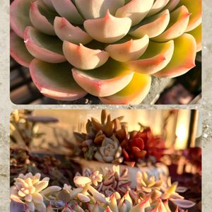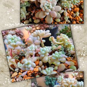 こんばんは🌛😊 今週は今期最大の寒波到来なので、ビビりながら待ち構え中( ⌯᷄ω⌯᷅ ) ①右から~左から~✧p📷qω•,,´)パシャ✧ ②全体像 昨日(日曜日)寄せました😊 うちの子達で作る寄せ植えなので、エケいっぱいとかは出来ません💦 どの子にするか慎重に選んだ(。-`ω´-)ンー ボロボロから可愛く復活した、元葉挿しっ子🍑ちゃんと、多分アルバ(これも葉挿しっ子)を使いました。 手前の斑入りタイトゴメとサクサグラレだけカット挿し😊 あとは根付きで植えました。 根付きの寄せ植えはホント時間かかって大変よ😮💨 大変だったけど楽しかった~❤ 可愛いわぁꉂ🤭親バカ