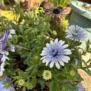 こんばんは〜( *´꒳`* ) アメリカンブルー💙 &白花♡🤍♡ 八重咲とあった白花は一回りお花も葉っぱも小さめ🌿 5月に小さな苗🌱を見つけてお迎えして アナベル 娘宅のお庭より挿木した鉢植え🪴 今頃…開花し始めました✨ 爽やかな顔ぶれ〜🤍💚 後方の春の寄植え 斑入りのオステオさんはおひとり様🪴 ライスフラワーは半日陰になるドウダンツツジの下に定植してみましたが…どうでしょうか? 今日のお庭より 今日も1日お疲れ様でした☁️