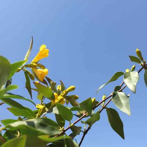 本日2枚目 カロライナ.ジャスミン 2月初旬に小さな苗をお迎えして開花し始めました🌼 久しぶりにハンギングにしてみましたが… ✨〜♪ 〜香爽やか〜✨ 良い一日に🤗