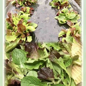 おはようございます リーフレタス🥬 初採りしました まだまだ小さいですが、密でしたから🌱 少し○🌱○🌱w 柔らかですよ✨ フワフワ美味さん🥬🥖 昨年の11月に蒔いた種 こちらはカラカラのお天気でしたが先日の纏まった雨でイキイキ🌱 …下り坂の空模様 穏やかな一日になりますように♡