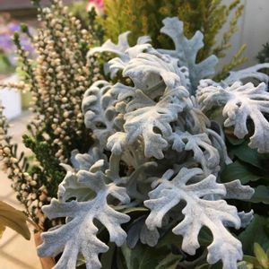 おはようございます☀ 休日のお花,シロタエギク シルバーリーグ🌿 (白妙菊) 昨年11月末に寄植え用にお迎え🌱 今朝は軒下組さん達も凍程🥶 日中はポカポカ陽気予報… 穏やかな一日になりますよう♡