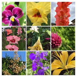 お庭と畑で咲いている お花🌼🌸PiC まとめて😆 ♯ ブルーサルビア ♯ ビオラ ♯ユリ ♯ グラジオラス ♯ アリウム ♯ ナンテン