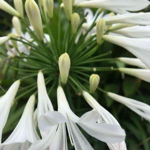 おはようございます☀️ 今日は晴れそうですねぇ✨ ♯ アガパンサス プラエコクス 白バナ 咲いてくれました♡♡ まだ1年目株も小さいのですが…、💖 爽やかに見えますかぁ〜😉