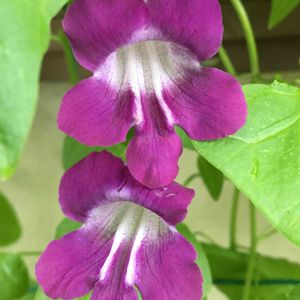 おはようございます☀ 今朝は爽やか。。緑のカーテン ♯ アサリナ 紫花 1.5㌢位の小さな可愛いお花です (ズームで)