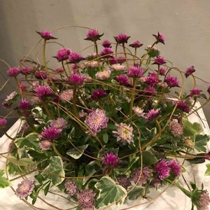千日紅(ファイヤーワークス)のアレンジメント。鮮やかなピンクの花をふんわりと可愛らしく仕上げました。