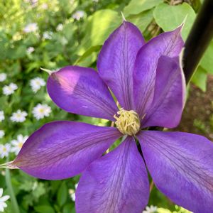 こんばんは〜 クレマチス カンテス.オブラブレース💜 一重咲で開花しました 今シーズン1番ノリで3年目✨ 全開ホヤホヤ〜 このまま…今年は皆シングル?🙄 昨年は全てダブルでした💜 様子♡見守ります〜 今日は風もまだありますが…暖かく良い日和でした☀️