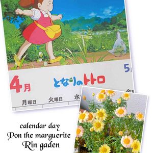 おはようございます- ̗̀ ☺︎ ̖́- ポンザマーガレット•˳୭❃̥˚•˳୭❃̥˚•˳୭❃̥˚•˳୭❃̥˚• ピンクレモネードのお名前だけあって、ちゃんとピンクや黄色のカラーが咲いてくれてます(*´︶`*)ノ 去年より今年の方が沢山咲いてくれたような気が😳 さてさて4月のトトロのカレンダーは❣️ メイちゃんが小トトロを見つけて👀 追いかけてますね(ღ*ˇ ˇ*)。o♡ 逃げる小トトロ😆 その先に待っていたのがトトロ。 お腹の上でメイちゃんがお昼寝してるシーンも目に焼き付いてます😅 🏷カレンダーの日