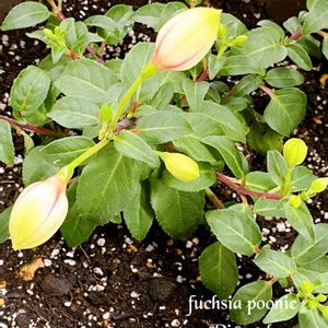 おはようございます🌧☔️ フクシア プー二ー॑ᵕ ॑✿.*·̩͙ イヤリングのような花姿がとても可愛いです。去年もお迎えしたのですが、残念ながらダメになってしまい、 今年も再チャレンジ(*'-'*)ノ" 🏷金曜日の蕾たち