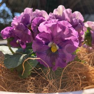 パンジー パルムディレーヌ 小さな苗で出会ましたが…ラベルではお色分からず〜花数も増えフワフワフリルが見れましたぁ✨ 大人可愛い色合いでした💜❤️ 良い日曜の午後をお過ごし下さいね〜♪