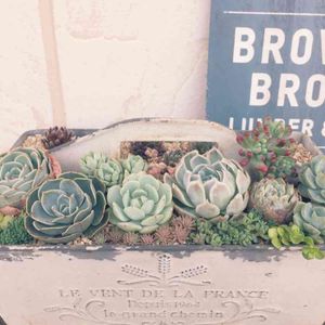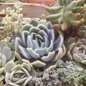 エレガンスがいちばん大きくメインの多肉です♩︎ 高さを出すのに乙女心を入れてみたけど… やっぱり寄せ植えは難しいです ( •́⍛︎•̀ )