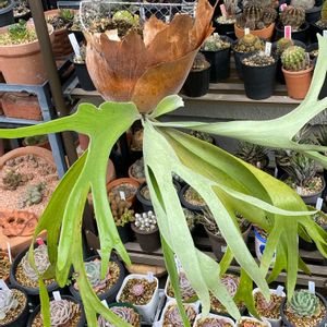 2021年12月 コウモリランポケットなる商品に植え替えたveitchii。 2018年12月ホムセンから来た。最初卵型の吊り下げ鉢に植え替えた片割れ。 2023年3月24日に屋外へ。