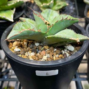 こんばんは🌛 こちら新入りのチタノタちゃんです♪ いつもアガベを買っている服屋さん主催の実生苗の育成大会に参加させて頂いてます。 実生No.1を決めるので通称M1グランプリですw 苗の選び方はくじ引きでこちらの株に決定しました。 アガベガチ勢の方々を相手に室内のライトなど育成環境では全く歯が立たないので、来春から地植えして勝負を仕掛けたいと思います🤣