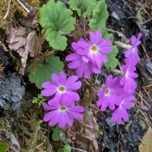 南アルプス林道の初夏を彩る花たちです。 ①② 信濃小桜(シナノコザクラ) イワザクラの変種で、蒴果の長さが違うようです。 ③④ 小深山片喰(コミヤマカタバミ) 花弁の赤い脈が美しいです。 ⑤ 深山菫(ミヤマスミレ) 淡紅紫色の優しい色合いで苔むした湿った場所に群れて咲いていました。