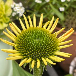 🧡エ🧡キ🧡ナ🧡セ🧡ア🧡 ✨シャインスピリット✨🌿 やっと花びらの色がついてきた〜🥰 この子は鉢植え🪴 地植えしてある親は リシマキアが手前に植ってて リシマキアが咲き終わって葉を切ったら エキナセアの葉が🐛くわれていました😆 まだつぼみ エキナセアも3種類植えてあります