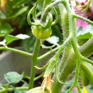 トマト フルティカ🍅 プランター栽培です。 1つ実が付いてます⤴️