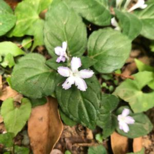 6/10に咲いていた花 イナモリソウ(アカネ科) 地際にくっついた草体に似合わないほど大きな花を咲かせます☺️ 高知・横倉山にて