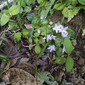 イナモリソウ初めて見ました❣️花径が1.5センチほどで地面に貼り付くように咲いてます。薄ピンク色がとても可愛い。右の写真のように花弁が細くて尖ってるタイプも多く、これをホシザキイナモリソウと呼ぶそうです。 富幕山にて