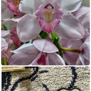我が家の、シンピジウムのお花、開花しました✨🎶🩷💜🩷 ✂する時、先端の蕾が折れてしまいました…可愛そうなので、お水に入れて飾っていたら、咲いてくれました✨🎶🩷💞💫