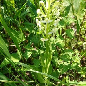 ツレサギソウ ラン科ツレサギソウ属 名前の由来はサギソウに似た花を多くつけることから。 花から突き出た3、4センチの長い距が特徴です。 咲いていました。 5.18 高尾山