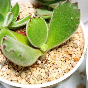 4つ葉の熊童子を購入して、すぐに1枚落としてしまいました。 あれから数週間・・・ 小さな熊の手が出てきましたー どうやら2葉です🙂 あまり動かさず、そっと見守ります🙆♀️ 落ちちゃった葉は、土の上に置いてあるのですが発根してくれていません🥺 難しいなぁ。