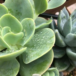 霧雨にあたった寄せ植えたち ;(´•௰•`)☂
